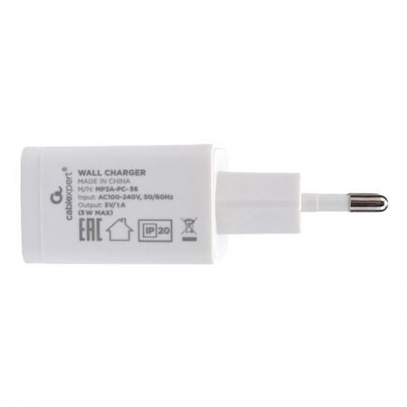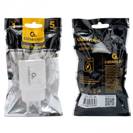 Производитель: Cablexpert Наименование: Зарядное устройство Входное напряжение: 100-240В Выходное напряжение: 5В Выходной ток: 1А Разъемы: USB A Материал корпуса: Пластик Цвет: Белый Упаковка: Пакет