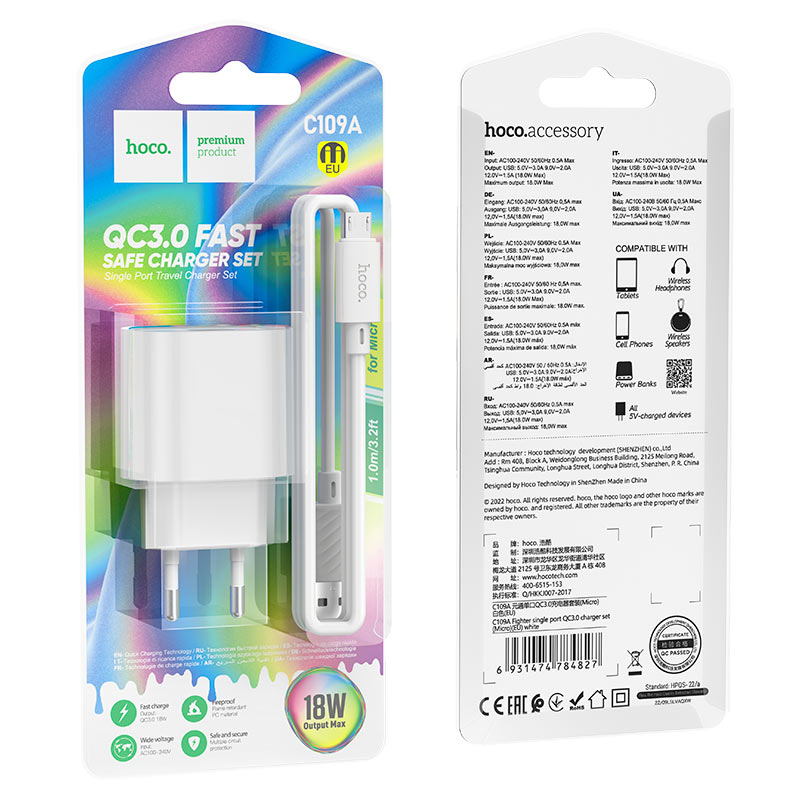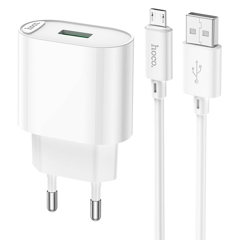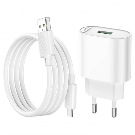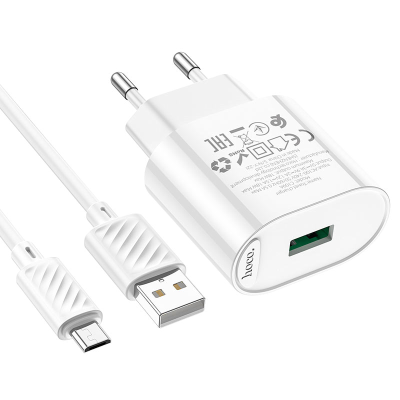 Зарядное устройство Hoco C109A QC3.0 3А USB + кабель Micro USB, белое