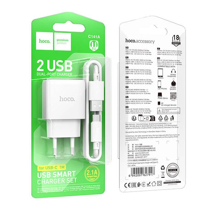 Зарядное устройство Hoco C141A предназначено для зарядки мобильной