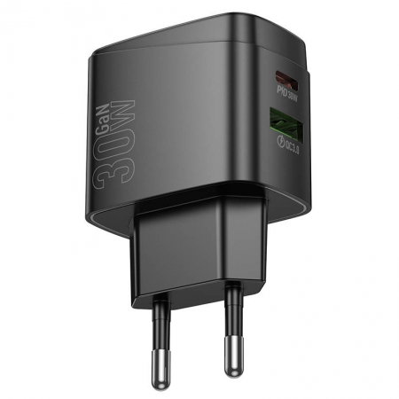 Производитель: Hoco Наименование: Сетевое зарядное устройство Входное напряжение: 100-240В, 50/60 Гц Выходное напряжение: 5-20В (PD), 5 -12В (QC), 3.3 -16В (PPS) Максимальный ток: 3А Выходная мощность: 30 Вт (PD), 18 Вт (QC) Максимальная выходная мощность: 30 Вт Поддержка быстрой зарядки: PD, PPS, QC 3.0/2.0, Huawei FCP, Samsung AFC Кол-во USB-портов: 1xUSB A, 1xUSB C Материал корпуса: Термостойкий ударопрочный пластик Цвет: Чёрный Размеры: 76.2 х 47 х 30 мм Вес: 72 г