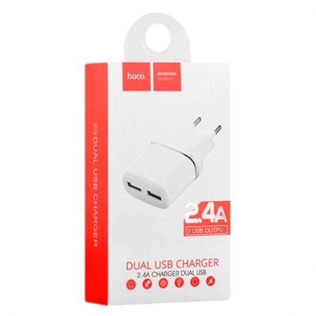 Универсальное зарядное устройство Hoco С12 Dual предназначено для зарядки различной мобильной техники от электросети 100-240В. Благодаря наличию двух USB-портов вы сможете зарядить несколько устройств одновременно. Выходной ток 2.4 А позволяет заряжать энергоемкие устройства, такие как планшетные компьютеры. Зарядное устройство имеет защиту от перенапряжения, перегрузки и перегрева. Корпус зарядного устройства изготовлен из огнестойкого ударопрочного пластика.