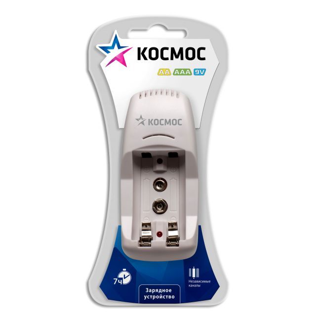 Компактное зарядное устройство Космос 501 позволяет заряжать 1 или 2 NiMH/NiCd аккумулятора размеров АА, ААА или 9V аккумулятор. Модель имеет автоматическую установку зарядного тока для АА или ААА аккумуляторов и защиту от обратной полярности. Устройство оснащено светодиодным индикатором заряда каждого канала и подключается непосредственно в розетку.