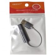 Внешняя USB звуковая карта Orient AU-04PL позволяет использовать гарнитуру от мобильного телефона или смартфона на Вашем ноутбуке. Подключив гарнитуру в разъем 3.5 мм адаптера, вы можете говорить по Skype и наслаждаться великолепным звуком. Также в устройстве имеются функциональные кнопки: регулировка громкости +/-, играть/пауза/трек вперед/трек назад. Адаптер автоматически определяется в системе и не требует установки драйверов. Отсутствие встроенного USB разъема и кабель длиной 10 см дают возможность подключать карту в компактно расположенные USB-порты.